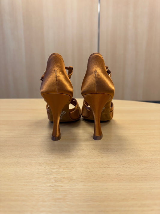 Mia T-Bar - Tan Satin - Size 5 - Narrow (XG)