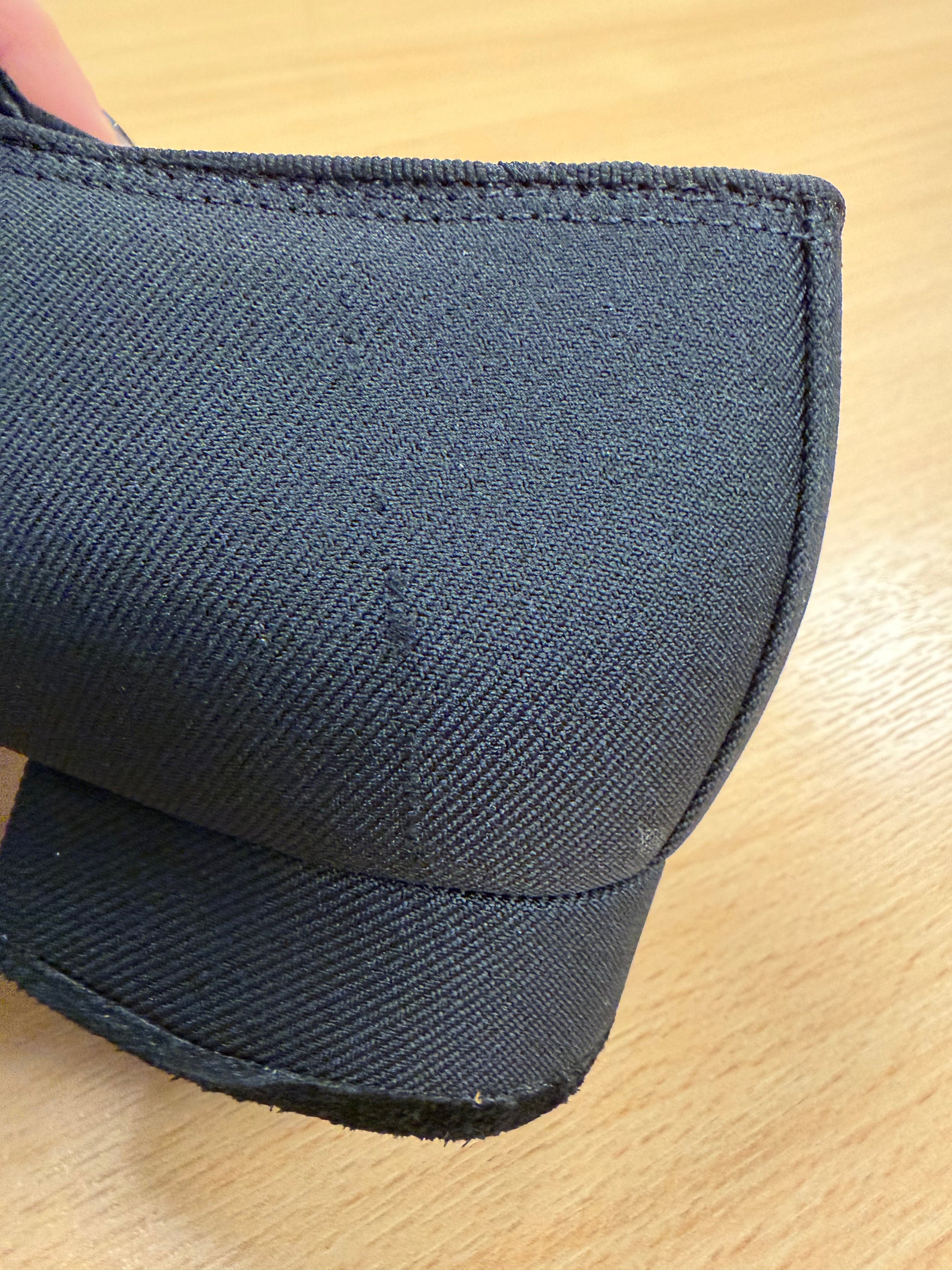 Factory reject: Thread pulled on the left foot, as seen in photo