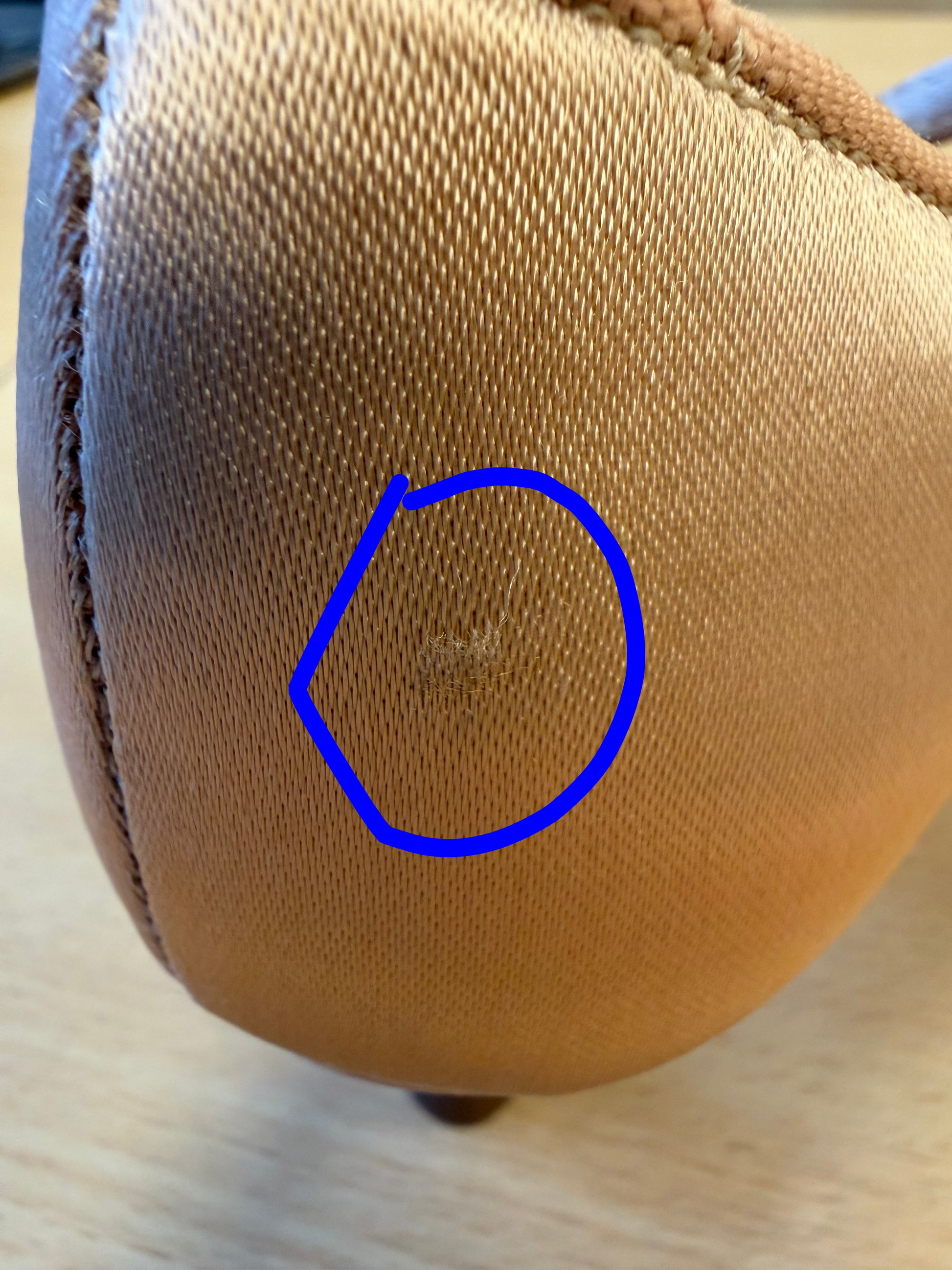 Factory reject: Tiny scratch on the left foot, as seen in photo