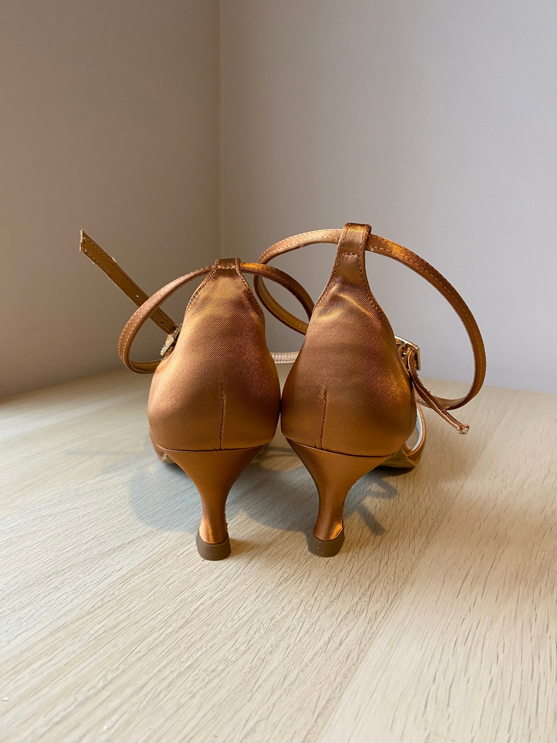 American Smooth - Tan Satin - Size 7 - Wide