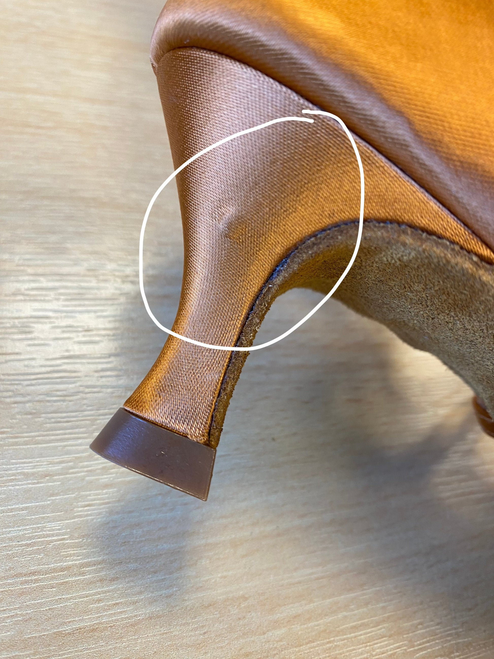 Fault: Small blemish in the heel of the left shoe (pictured)