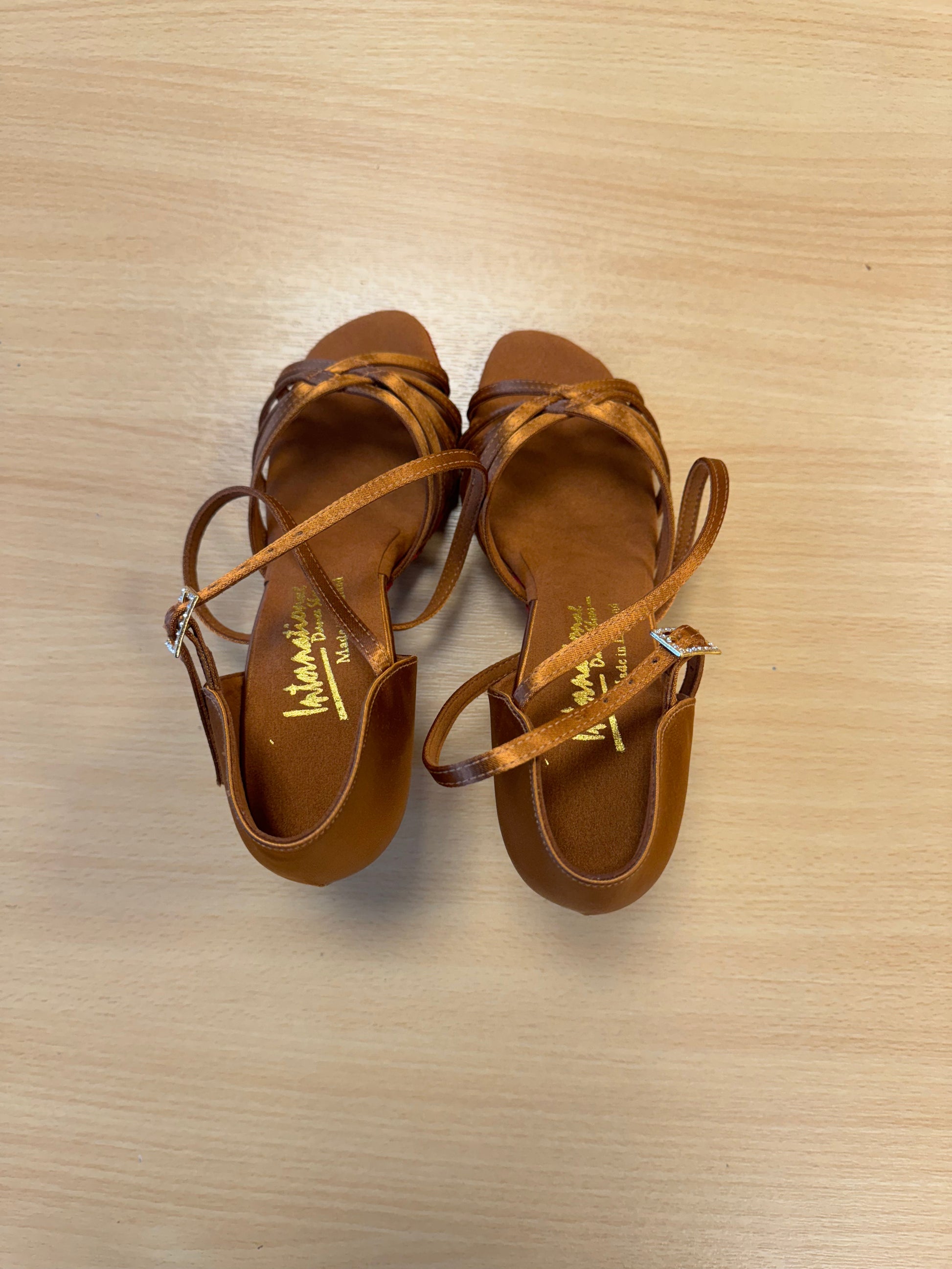 Flavia - Tan Satin - Red Soles (Size 4N)