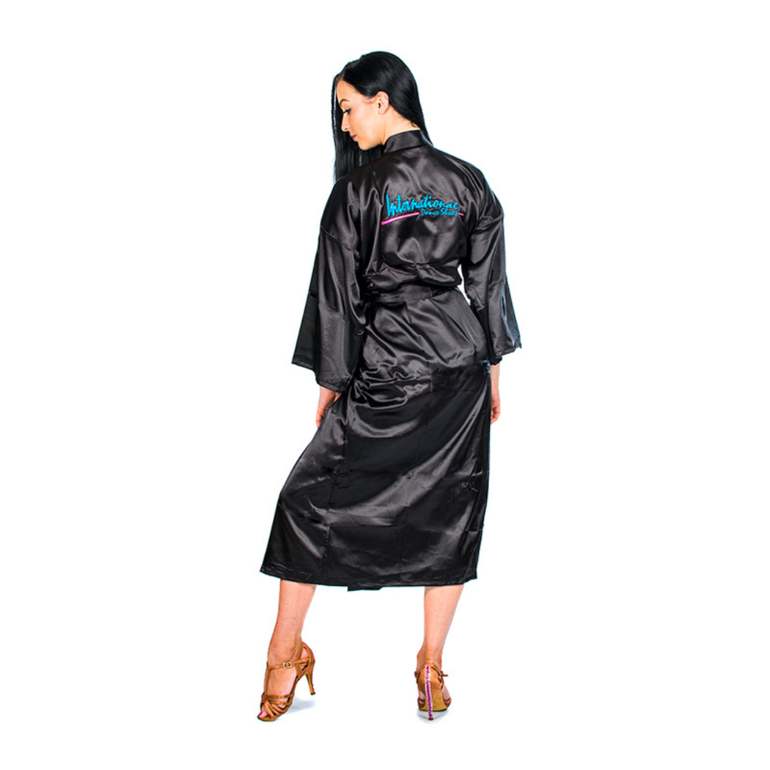 Our Kimonos are super soft and extremely lightweight and comfortable. They're perfect for wear in and around the Ballroom, at practice and even at home. Modelled here by Rebecca Scott, a Blackpool Under 21 Latin Champion! We have two sizes for our Adult Kimono - a long version and a short version. The long version is 118cm long and the short version is 92cm. Both have a chest of 122cm. Rebecca is 5ft 6" (171cm) with the 3" Ultra Slim heels of her 'Lucia' shoes included. If you are looking for something smaller for a child, then click here for our Children's Kimono.