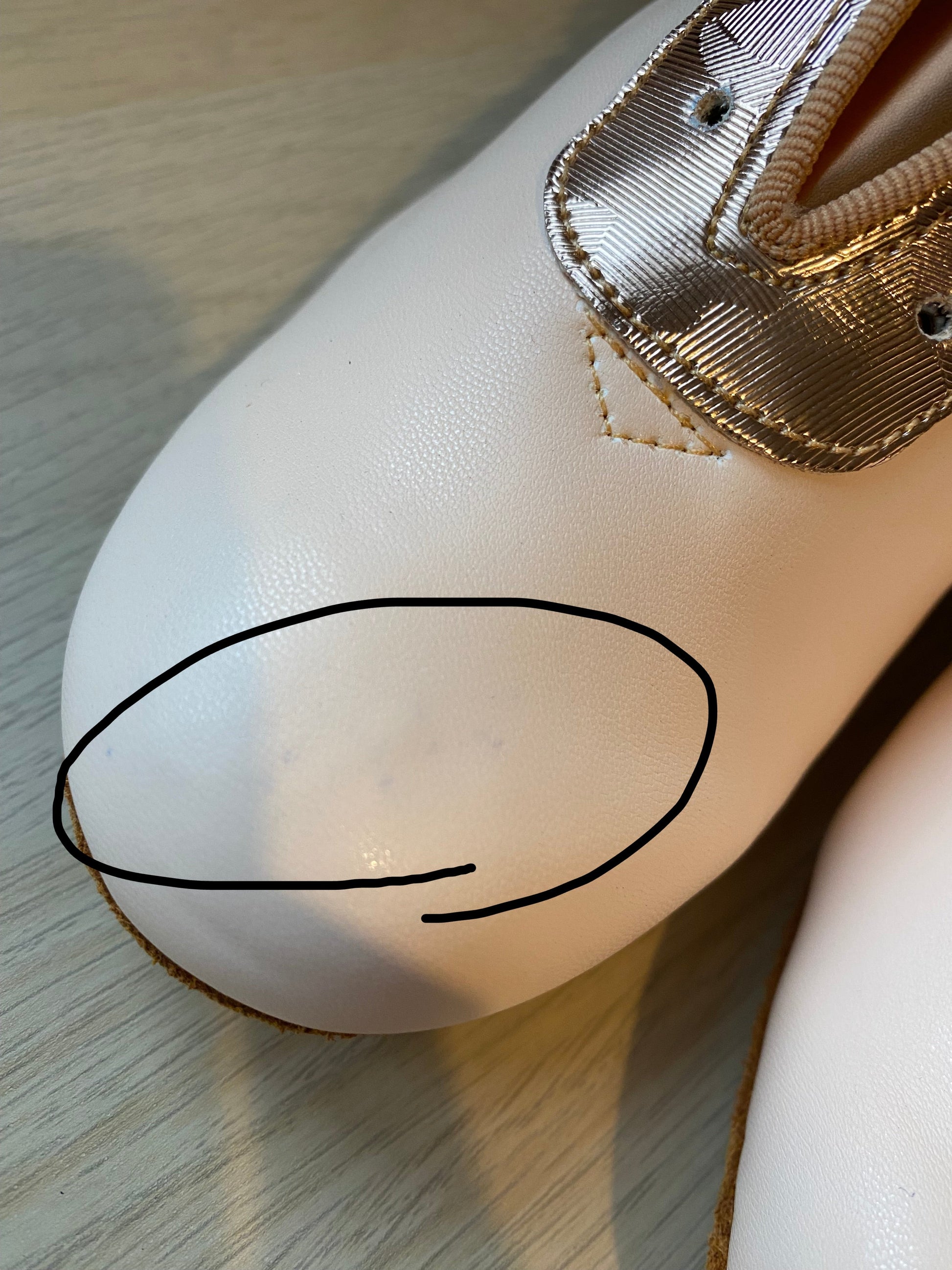 Fault: tiny marks on the toes of both shoes and with original zig zag heel stripe (pictured)