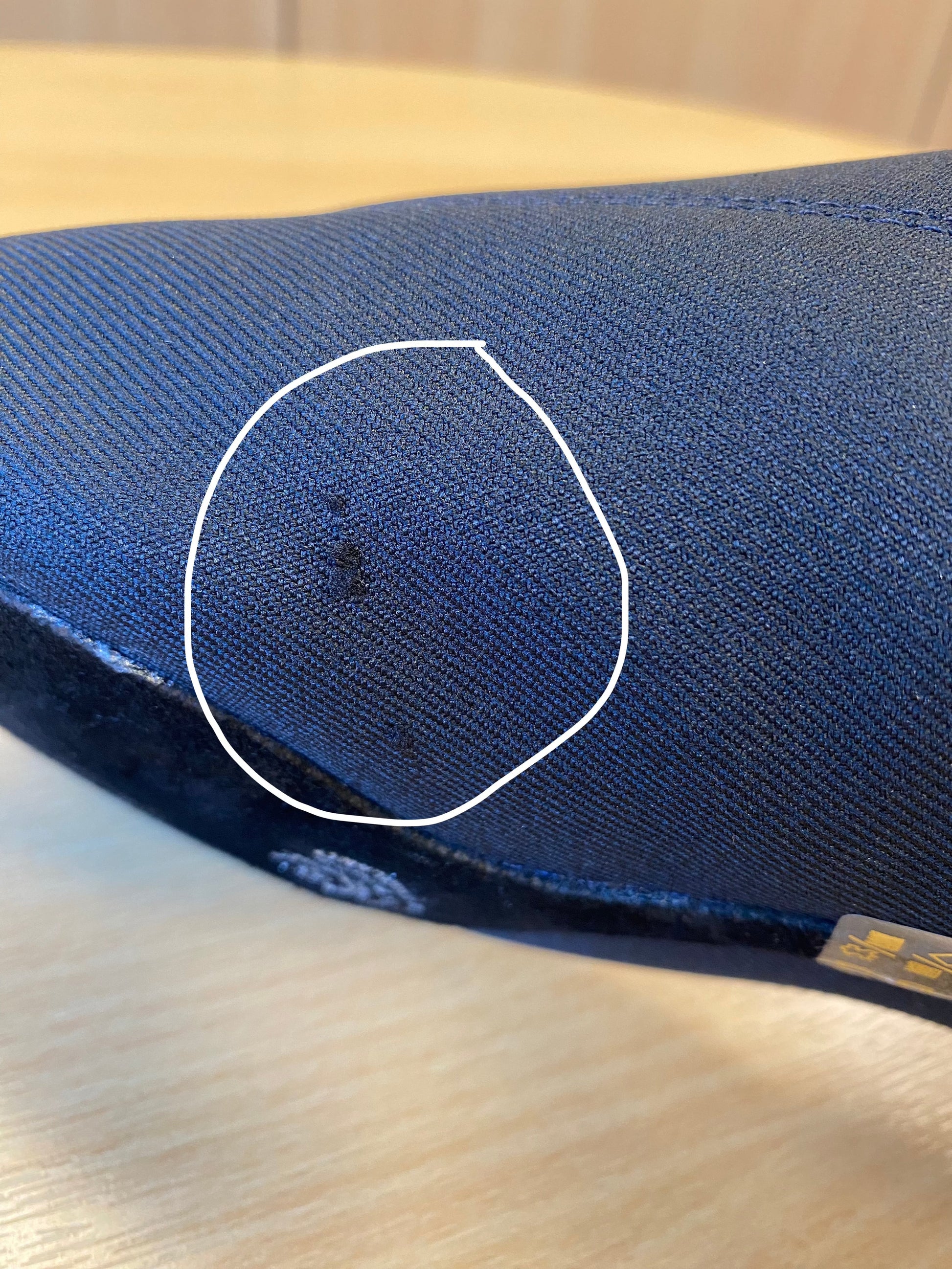 Fault: Small snagg in the fabric under the arch of the right shoe (pictured)