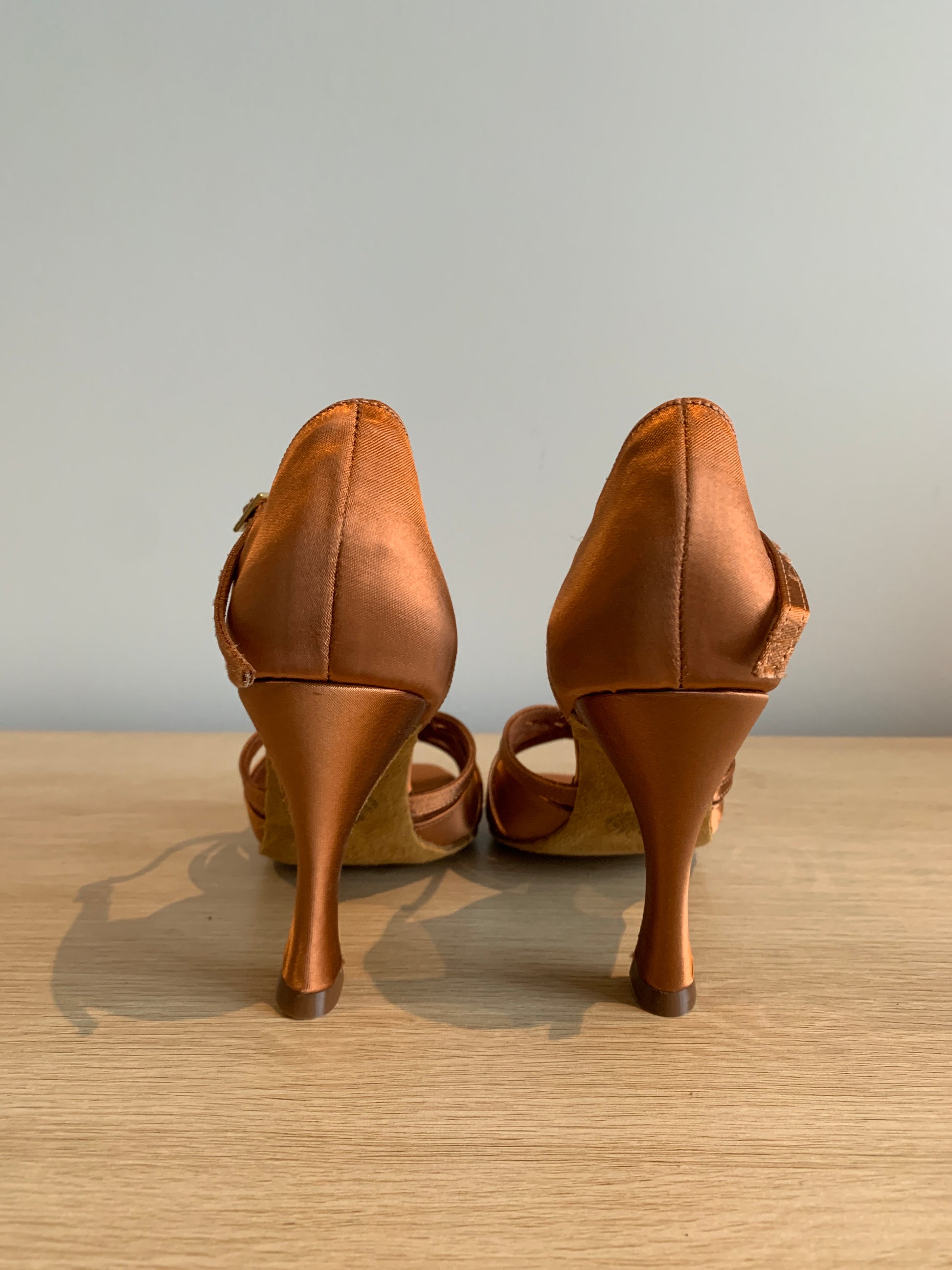 Mia T-Bar - Tan Satin - Size 5 - Regular