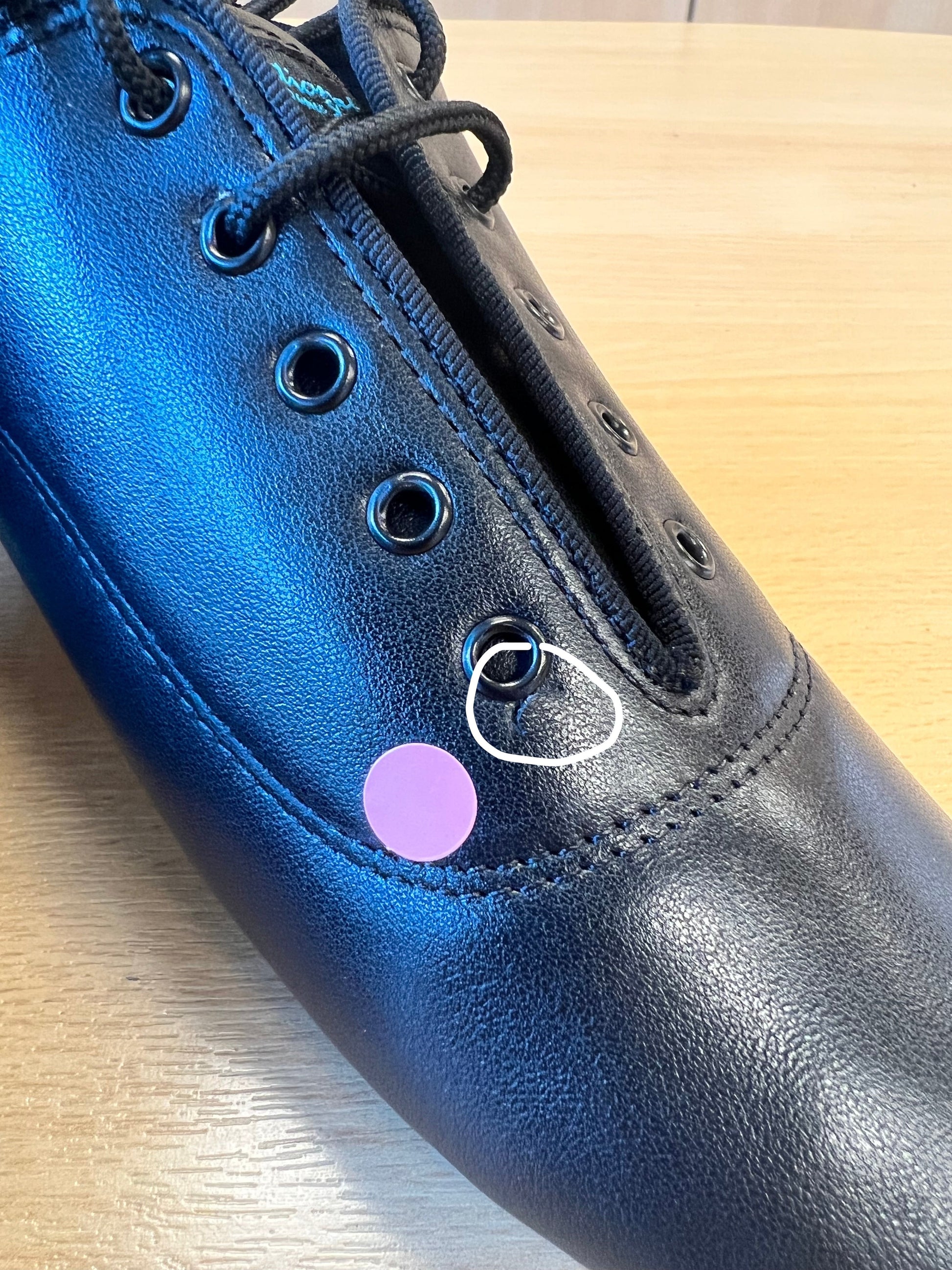 Fault: Small hole punch mark under eyelet on the left shoe (pictured)