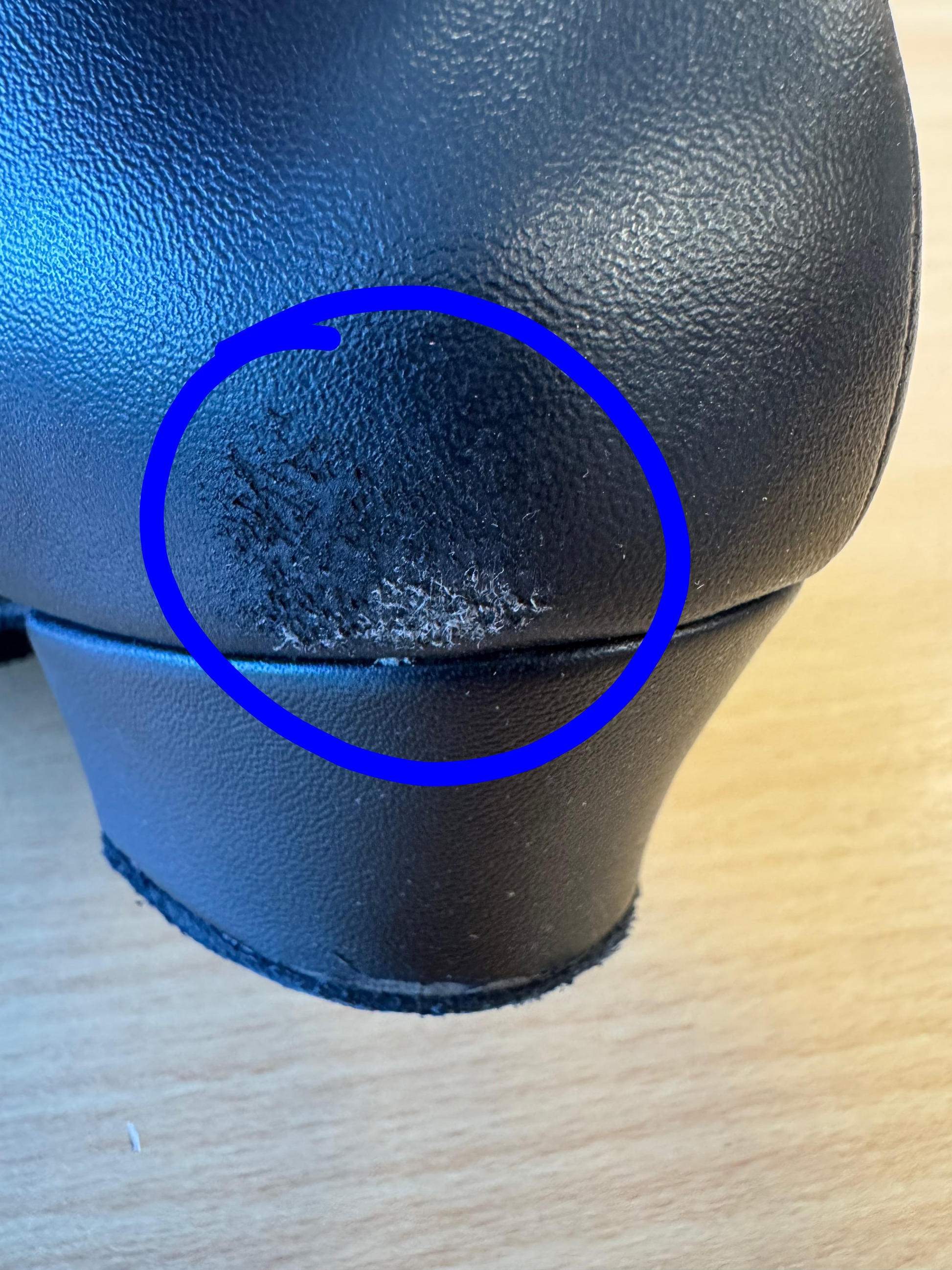 Factory Reject: Scuff mark on right shoe, as seen in photo